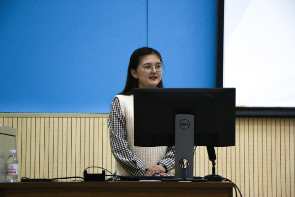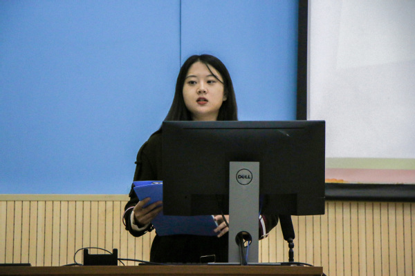 国家奖学金获得者汉语1802班崔文琪则从思想政治、专业学习和学生工作三个维度展开,并结合自身实践经历,着重强调了大学生创新发展。她指出大学生要投身思想政治,武装头脑。对于学生参加的实践工作,她认为应当多领域拓展涉猎,找到自己所擅长的部分并不断尝试,才能超越自我。她以自己的专利申请为例,鼓励新生积极参加创新创业,在全新领域寻求突破。通过讲述自己在中国银行实习时,模拟金融炒股的经历,她鼓励新生走出校园,不断拓宽自己的视野。当问及团支部的建设方案时,她提出发挥奖惩机制作用,探索制度创新,实现“班团一体化”的建设路径,这有助于新一届学生干部在班团建设中汲取经验,并付之实践。