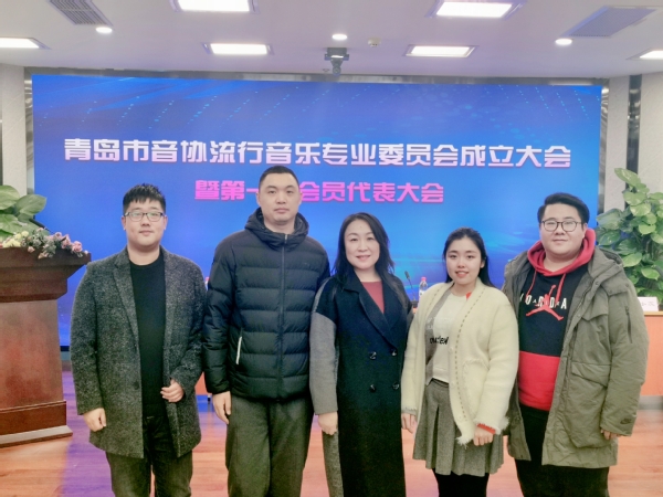 李汉老师(左一)当选第一届青岛市音乐家协会流行音乐专业委员会理事