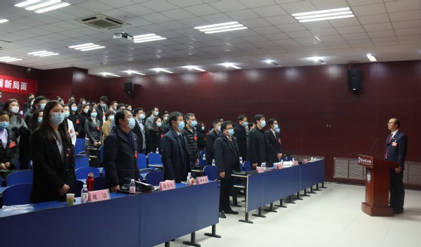 全体起立奏唱《中华人民共和国国歌》 韩承君摄