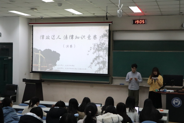 本次比赛分为初赛和决赛。竞赛内容主要涉及宪法、民法、刑法等方面的法律常识以及法律热点问题。初赛于12月10日16:15进行,采用线上答题的形式对基本的法律知识进行考查。经过初赛的激烈角逐,21名选手脱颖而出,以优异的成绩进入决赛。决赛于12月12日19:00在东环104教室举办,第一轮“独当一面”为选答环节,第二轮“针锋相对”为抢答环节,第三轮“勇往直前”为附加环节,最终综合以上一、二、三环节比分进行排名。为活跃现场氛围,除以上比赛环节外,决赛现场还增加了观众互动答题环节,加强了全体同学的参与度。在本次挑战赛中,各位参赛选手凭借充分的准备和精彩的表现赢得了全场同学的阵阵掌声。最终,高雪和高林凭借扎实的法律知识双双获得一等奖。