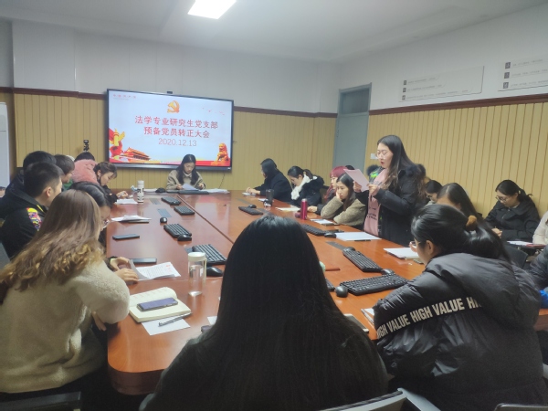 12月13日下午,法学专业研究生党支部于文理楼304召开了预备党员转正支部大会,会议由党支部书记孙雪主持。