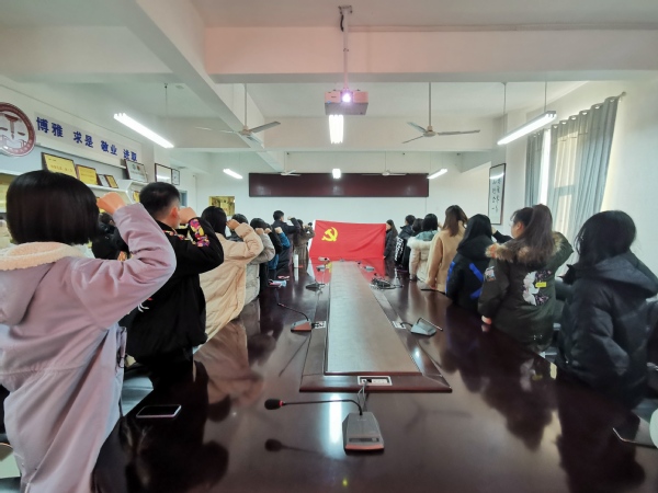 12月21日上午,太阳成集团tyc122ccvip学生党总支举行预备党员入党宣誓仪式暨新党员座谈会。学生党总支副书记赵振华主持,学生党支部书记、全体新发展党员参加。