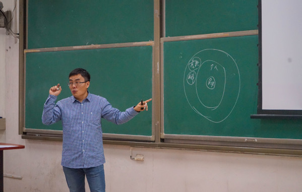 之后进入到绘画体验环节——在纸上画一棵树。赵小明随之进行讲解:“从绘画中可以分析情绪和性格。从树的大小上来看,可以分析一个人的性格和自我定义。从树的位置上来看,可以分析一个人对现实的关注。从笔触上来看,可以分析一个人的自控能力...”赵小明通过轻松愉悦的方式分析学生心理,为学生讲解心理知识并进行心理疏导。