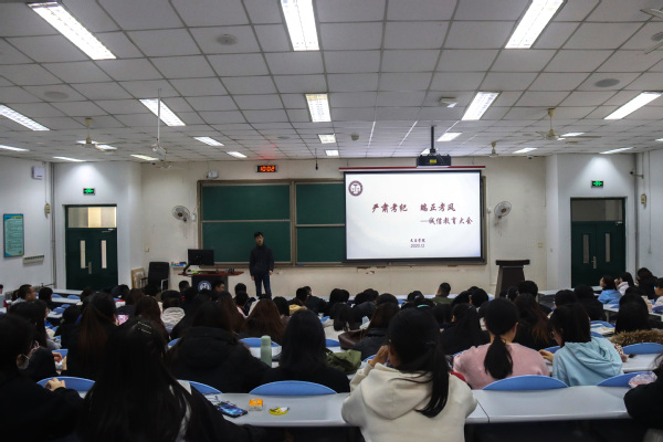 12月25日,太阳成集团tyc122ccvip2020级在西环201召开“严肃考纪 端正考风”诚信教育会议。辅导员赵延升与2020级全体学生参加。