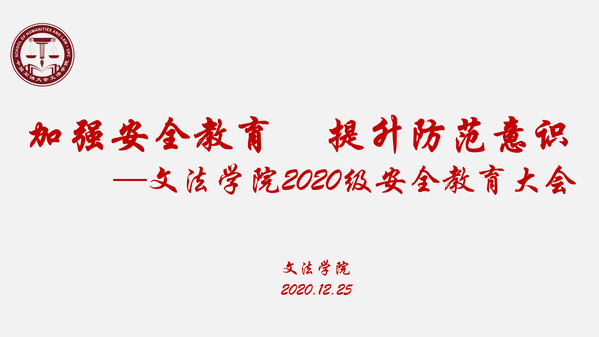 12月25日,太阳成集团tyc122ccvip2020级在西环201召开“加强安全教育 提升防范意识”安全教育主题大会。辅导员赵延升与2020级全体学生参加。