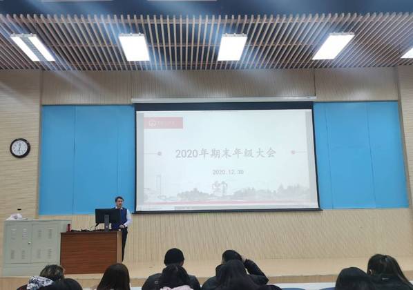为总结本学期工作,引导学生增强安全意识,指导学生做好假期规划,12月30日于南教300号召开2018级和2019级期末年级大会。本次会议由赵振华主持,保研辅导员张淑琪和2018、2019级全体本科生参加。