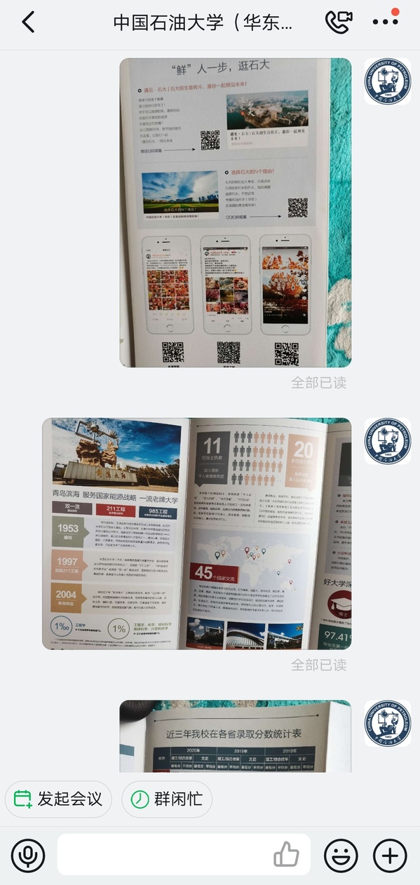 首先,线上宣讲主要包括两个部分:“认识石大”和“解疑答惑”。在“认识石大”部分,借助腾讯会议的帮助,在线上进行对我校具体资料的介绍,帮助同学们建立对石油大学的初步印象,培养同学们积极学习,报考我校的热情和信心。之后,针对部分同学在宣讲过程中部分不理解或不了解的现象和问题,实践队成员又特地进行了“解疑答惑”部分的介绍。在该模块,成员通过进入当地学校的内部招生宣传和新高考经验分享群,收集同学们面对宣讲时的疑惑,随后小组进行针对的讨论分析,最后将讨论的结果向提出疑问的同学进行回答,并且讲解我校的不同专业,收集学生的反馈,让同学们能够从整体上建构起对我校的充分理解,便利了之后我校的招生工作。同时,此次宣讲活动也得到了母校老师和同学们的认可。