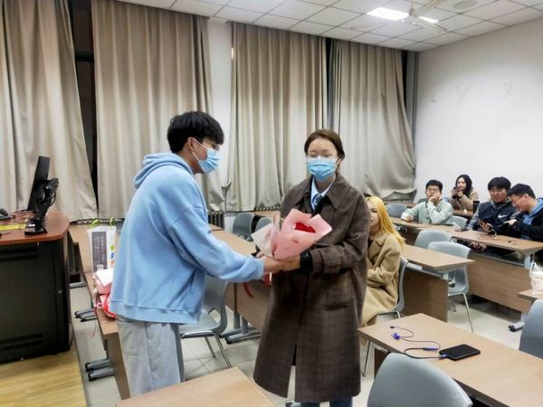 活动伊始,团支部副书记张斌傲向支部女生表达思美节祝福,随后由团支部副书记张斌傲代表支部全体男生向在座的每位女生送花,整个送花环节仪式感满满。送花环节结束后,团支部所有女生携花进行合照,记录这个美好时刻。