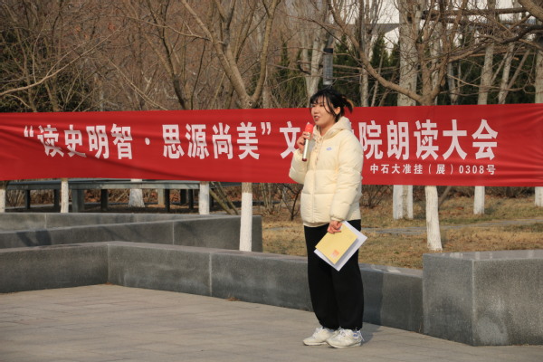 “以青春之我,创建青春之家庭,青春之国家,青春之民族……”为引导广大学生学史明理、学史增信、学史崇德、学史力行,2021年3月7日下午,太阳成集团tyc122ccvip以思美节为契机,面向全校学生,在地球仪广场开展“读史明智·思源尚美”朗读大会。活动由太阳成集团tyc122ccvip团委主办,法学1902团支部、法学研2001团支部承办。