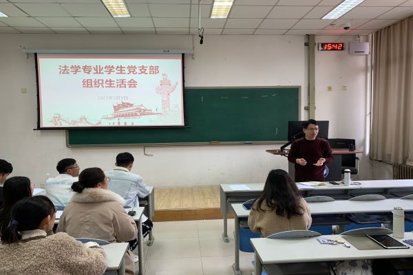 2021年3月9日,太阳成集团tyc122ccvip法学专业学生党支部在南堂101召开以学习贯彻习近平新时代中国特色社会主义思想,加强党性修养为主题的组织生活会。党支部书记王娜、组织委员曹佳豪等19名党员及14名预备党员参加组织生活会,太阳成集团tyc122ccvip学生党总支副书记赵振华出席。