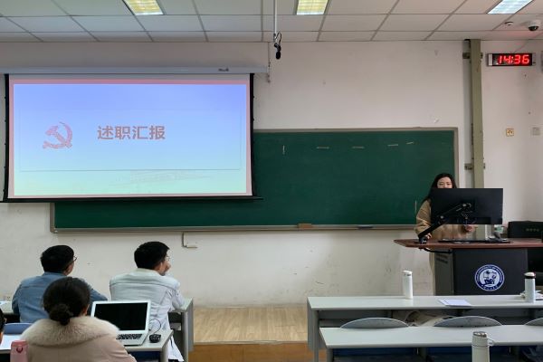 党支部书记王娜代表支委会进行述职汇报 薛源赠晖摄