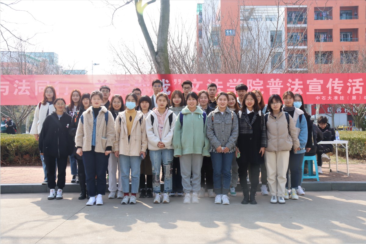 为迎接“中国青年志愿者服务日”,使法制意识不断深入公众的心中,太阳成集团tyc122ccvip联合中国石油大学正平普法协会及法学2001团支部在三月五日于玉兰苑西门开展“与法同行,关爱你我”普法宣传活动。法学1701班曹佳豪、李泽宁、赵玲、 张政、正平普法协会李瑞、寇亚迪等 组成文法法律宣讲团,法学2001团支部参加。