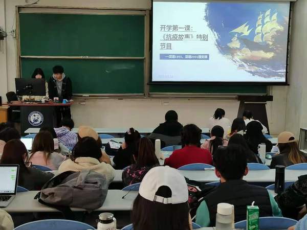 为配合国家疫情防控要求,深入学习贯彻习近平新时代中国特色社会主义思想,鼓励团员听党话、跟党走,增强支部成员自我防护意识。3月16日,汉语1801团支部、汉语2001团支部在西环107联合组织观看«开学第一课“抗疫”故事»。活动由汉语1801团支部书记蒋雯宇主持,汉语1801团支部、汉语2001团支部全体成员参加。