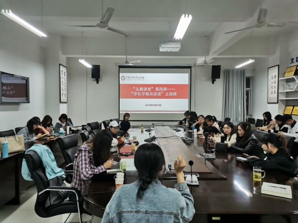 5月12日下午,“头雁讲堂”第四讲---保研经验交流分享会于文理楼358会议室顺利召开,2017级6名保研学生分享了保研经验,太阳成集团tyc122ccvip辅导员赵振华、张淑琪、2018级、2019级二十余名学生参与会议。