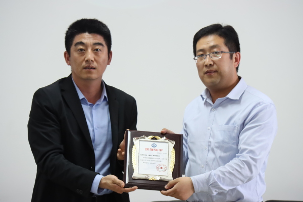 合作发展处副处长张炜代表学校为北京市中永(青岛)律师事务所颁发捐赠证书
