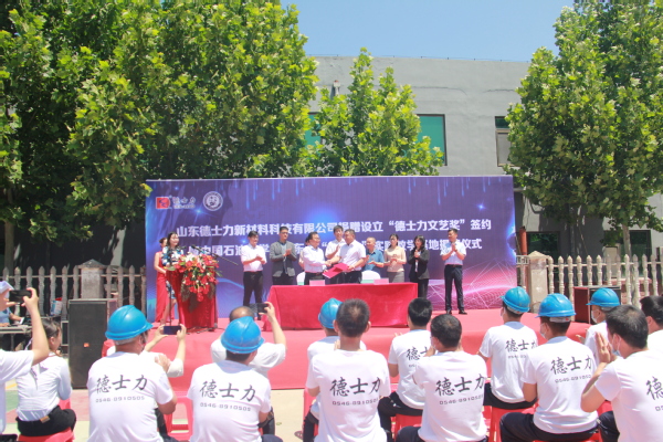 为深化产学合作,奖掖文艺特长人才,山东德士力新材料科技有限公司特在我院设立“德士力文艺奖”奖学金。6月4日上午,院长王学栋一行前往东营参加“德士力文艺奖”签约暨太阳成tyc122cc集团德士力实践教学基地揭牌仪式。东营经济技术开发区管委会牛效强副主任、德士力新材料科技有限公司总经理王聚军先生、财务总监卢爱丽女士、销售总监张洪军先生等出席了仪式。