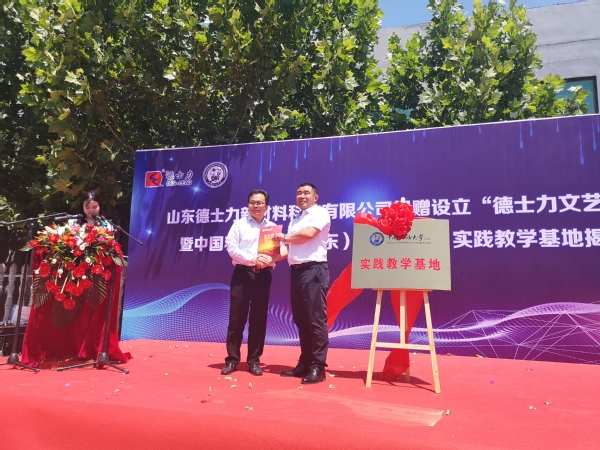 随后,签约暨揭牌仪式正式开始。王学栋院长在讲话中指出:“‘德士力文艺奖’的设立,体现了德士力公司领导高度的社会责任感和回馈社会的决心,学院将用好这笔奖学金,充分发挥每一笔奖金的作用,促进学院及学校的文艺建设。此次合作只是第一步,期待双方有更深入、全方位的合作。”王聚军总经理在讲话中表示:“德士力能够稳步发展至今,离不开党和政府提供的良好营商环境,回馈社会、奉献教育是企业的责任。”牛效强副主任高度评价了此次签约,充分肯定了校企战略合作的意义,并对今后的发展送上美好祝愿。