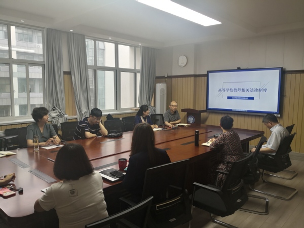 此次专题学习中,法学系党支部书记、副主任康雷闪副教授作了“高等学校教师相关法律制度”的专题发言。康雷闪从教师的法律地位、教师的权利、教师的义务、教师资格制度、教师聘任制度等五个方面,并结合相关案例进行了讲授。授课结束后,老师们结合“偷拍案”“学费返还案”“教师解聘案”“不当言论案”等案例展开了交流讨论。之后全体老师结合学校下发的师德师风规范文件的内容进行了系统学习。