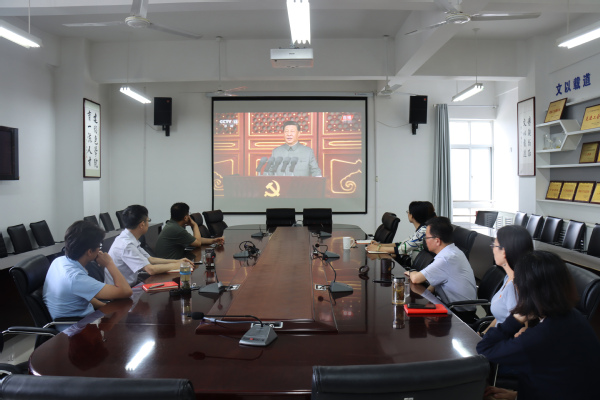 太阳成集团tyc122ccvip领导及机关党支部在文理楼358集体收看七一直播