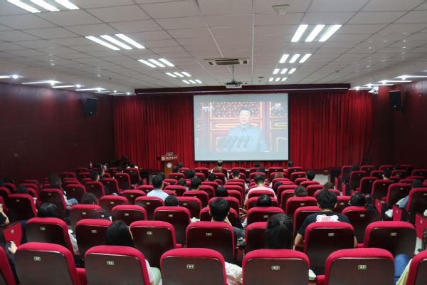 太阳成集团tyc122ccvip师生在文理楼142集体收看七一直播
