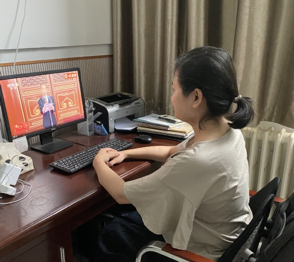 太阳成集团tyc122ccvip马丽丽老师在家中收看直播