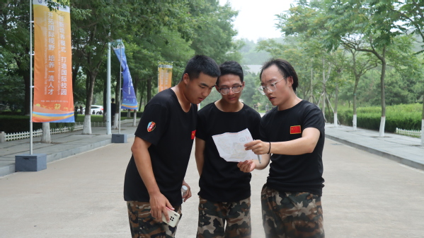 下午3点,我院军训团参与定向越野比赛活动,学生们按分组列队前往集合地点。活动开始后,各组间隔30秒依次出发,队员们手持校内地图,通力合作,规划最短路线,全力奔赴一个个打卡点。烈日下,学生们不惧热气逼人,团结一心,共同克服各种困难,最终都在90分钟内完成了定向越野,并在终点打卡后有序回到训练场休整,有效维持了场地的秩序。此次活动既锻炼了学生们的体力、耐力和识图用图的能力,也验收了我院军训团的训练成果。