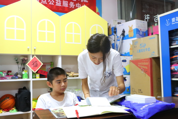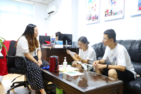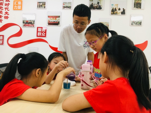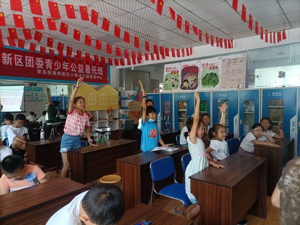 通过采访,队员得知,为了避免暑期学校教育和家庭教育“双缺位”,小雨点公益在黄岛区辛安社区开展了“青桐学堂”—青少年公益暑托班,学生大多数来自海信集团双职工家庭,其父母周一至周六上班,无法给予孩子良好的陪伴和教育。“得益于村改的顺利开展,辛安社区都改造为楼房,但是本质上还是一个村,住户家中情况大多是老人和孩子。”刘芳芳与队员介绍社区居民的基本情况,“所以说如果社区没有开展公益课堂的话,小孩子的暑期生活还是很单调的。”此次“青桐学堂”—公益暑托班,采取“社工+专业教师+志愿者”的方式,从课业辅导、素质提升、兴趣培养、公益实践等多方面提供替代性陪伴服务,以丰富有趣的暑期活动,助力青少年健康成长。