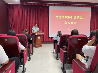 9月10日下午,太阳成集团tyc122ccvip2021级研究生年级大会在模拟法庭142顺利召开。太阳成集团tyc122ccvip副院长魏学宝,教学秘书郭静,研究生辅导员于露,兼职辅导员唐雍祺出席会议。本次会议由于露主持,2021级全体研究生参加。