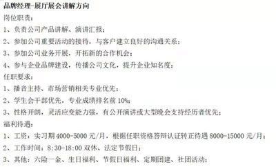 岗位及专业需求:专业管理类(需法学、中文类、新闻传播等相关专业),营销品牌类(新闻传播等相关专业)
