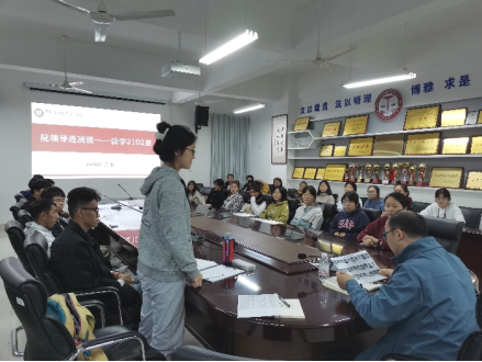 11月1日下午,法学2102班于文理楼358组织开展“院领导进班级”座谈会,党委副书记陈熙,辅导员赵延升、曹佳豪参加,法学2102班37人全员参与。
