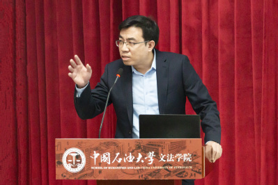 周灿律师从油气地质、油气勘探、钻井工程三方面简要概述了当前国内能源形势与世界能源发展状况,借此,他向大家介绍了石油行业和法律行业的交叉点。他表示,随着石油天然气管道的开发与建设,石油天然气管道压覆矿产资源所导致的司法纠纷逐年上升。此类纠纷的主要争议焦点可大致归纳为三类:一为诉讼主体的适格问题;二为管道企业的责任承担问题;三为矿业权人的损失认定问题。这为法学生的就业提供了机遇。最后,周灿向在座的石大学子寄语“校友也可以为我们提供支持和力量。希望大家毕业后能够以石大为荣,让石大为你骄傲。”