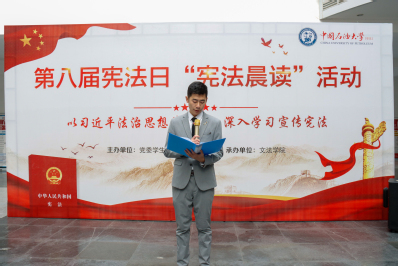 在第八届宪法日来临之际,“宪法晨读”活动使宪法走入学校师生、融入日常生活,推动了全校师生宪法学习宣传的热潮。“我校宪法学课程系统全面地讲述中国宪法,有助于唤醒我们的规则意识,树立道德的旗帜”,选修宪法学课程的学生何宁宇表示我们应当充分利用学校提供的便利,主动汲取宪法知识,提升自身法治素养。