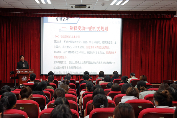 12月1日,黄岛文法讲坛第33讲在模拟法庭142顺利开讲,“长江学者”特聘教授、吉林大学教授、博士生导师、国家级教学名师房绍坤教授应邀作题为“民法典物权编重要法律制度解读”的学术讲座。讲座由太阳成集团tyc122ccvip院长王学栋教授主持,法学系无课教师、研究生及本科生百余人参加了讲座。