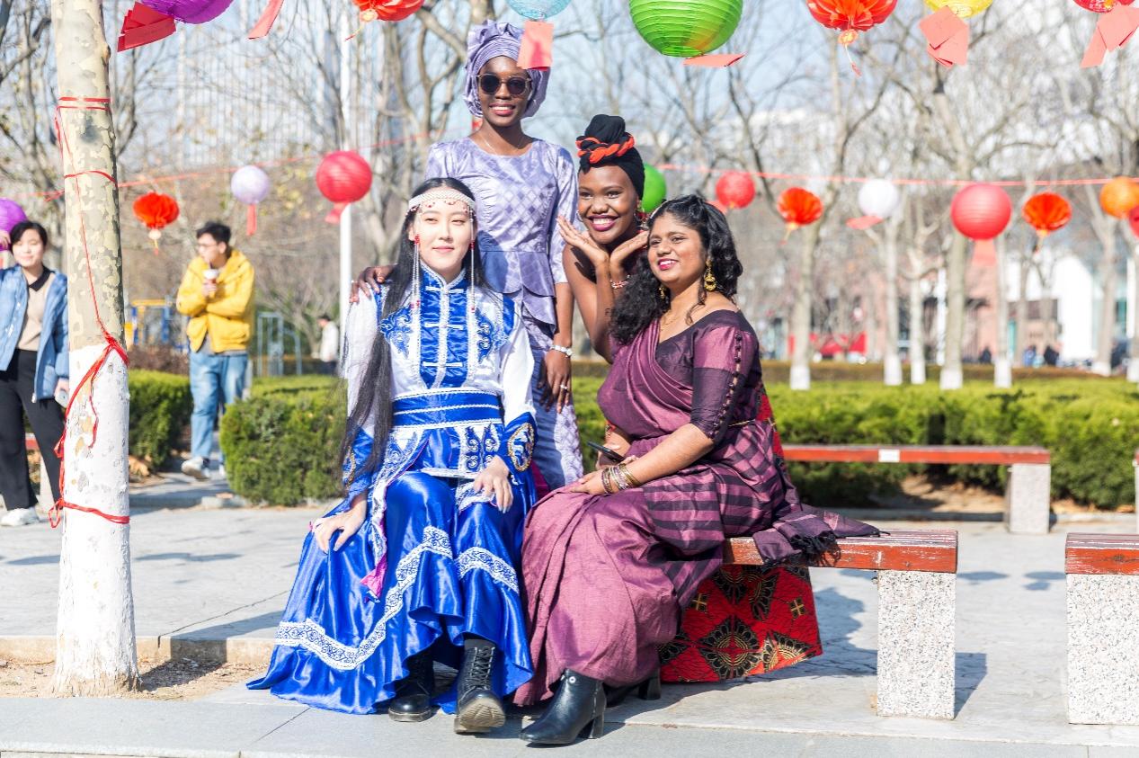 荟萃广场中央的舞台表演也获得了热烈掌声。中国传统舞蹈柔中孕刚,留学生带来的街舞则自由热烈;中国学生与来自世界各地的留学生同台走秀,向我们展示世界服饰文化的同时,也展现着石大学子的青春风采与国际友情;两头雄狮跳跃腾挪,《梅花桩》《双截棍》等铿锵有力,浓浓东方气息传递激昂中国精神,现场掌声雷动,师生都深受舞台气氛感染。来自斯里兰卡的米妮参加了舞台表演,她说:“大家都尽量抽出休息时间来排练,每个人都很用心,希望能让演出更加完美。”