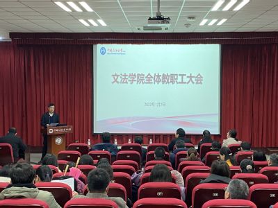 1月7日,学院在文理楼142举行全体教职工大会,大会由学院党委书记姚成郡主持,部分校友代表、学院全体教职工参加会议。