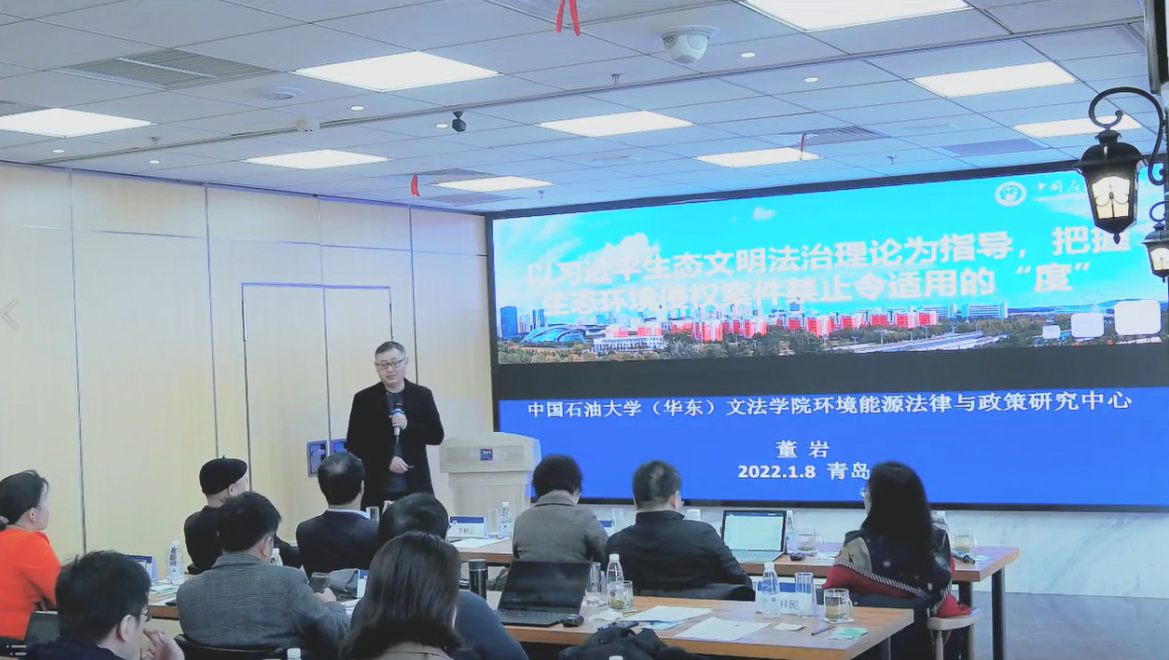 在“习近平生态文明思想与法治思想”专题报告环节,董岩做了题为《以习近平生态文明法治理论为指导,把握生态环境侵权案件禁止令适用的“度”》的报告。董岩以2021年12月28日所发布的《最高人民法院关于生态环境侵权案件适用禁止令保全措施的若干规定》为问题背景,从习近平生态文明法治理论下生态环境侵权案件适用禁止令保全措施的性质和功能、适度衡量实体正义和程序正义的体系融入等方面深入探讨了我国的禁止令制度。董岩以生态环境侵权案件禁止令的适用为切入点与与会专家、学者、律师进行了深入交流。