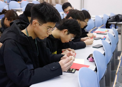 团支部成员根据视频指导,认真学习折纸 卓嘎摄