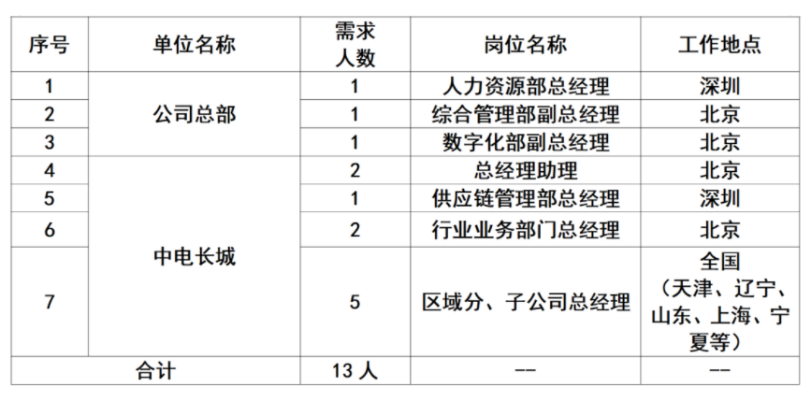 岗位需求:行政管理类、商务开拓类、金融财务类、投资工程类、IT运营类、合同合规类。