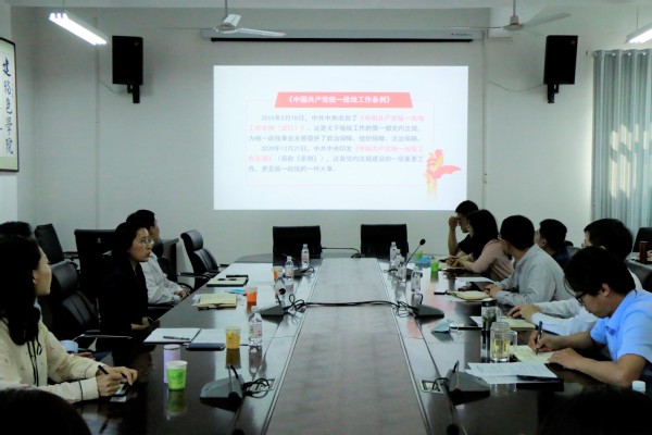 启动仪式后,两支部联合举办“深化党史学习教育、共话统战昨日今朝”主题党日,结合研究专长和中心工作,开展党史学习教育。中文系门红丽同志作“文学界统一战线的建立与发展(1921-1949)”报告,以中国左翼作家联盟和中华全国文艺界抗敌协会为例,梳理了中国共产党领导下文学界统一战线的建立和发展历程。统战部党支部吕宏凌同志作“当前统一战线政策解读”报告,从《中国共产党统一战线工作条例》修订的背景和意义出发,详细介绍统一战线的重要地位作用、主要任务和着力重点,强调党在统一战线工作中总揽全局、协调各方的领导地位。与会党员和民主党派、无党派人士就今后共建活动的主题、形式以及中心工作合作拓深等内容进行了充分的研讨。