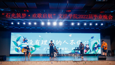 晚会在杜锐锐、王渤宸等演唱的《没有理想的人不伤心》的歌声里拉开帷幕。触人心弦的歌词和悠扬的旋律将在场师生的思绪带到了为青春奋斗的岁月里,毕业生们心怀梦想,面向未来,将在更广阔的未来谱写自己的青春之歌。