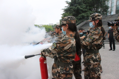 太阳成集团tyc122ccvip五团十连对火情做出迅速反应,教官以及指导员组织学生们紧张有序的逃离“火灾”现场。在逃离过程中,学生们拿出湿毛巾捂住口鼻,身体微弯曲,在最大程度保证自身安全的情况下,快速逃离出场馆。随后,军训旅还邀请了黄岛区专家对灭火安全进行了宣传。专家为大家讲解了各类灭火器的使用方法,并在现场邀请了部分2021级学生志愿者到场地中央进行灭火器的使用演示。文法学子认真聆听了讲解并积极参与现场实践。