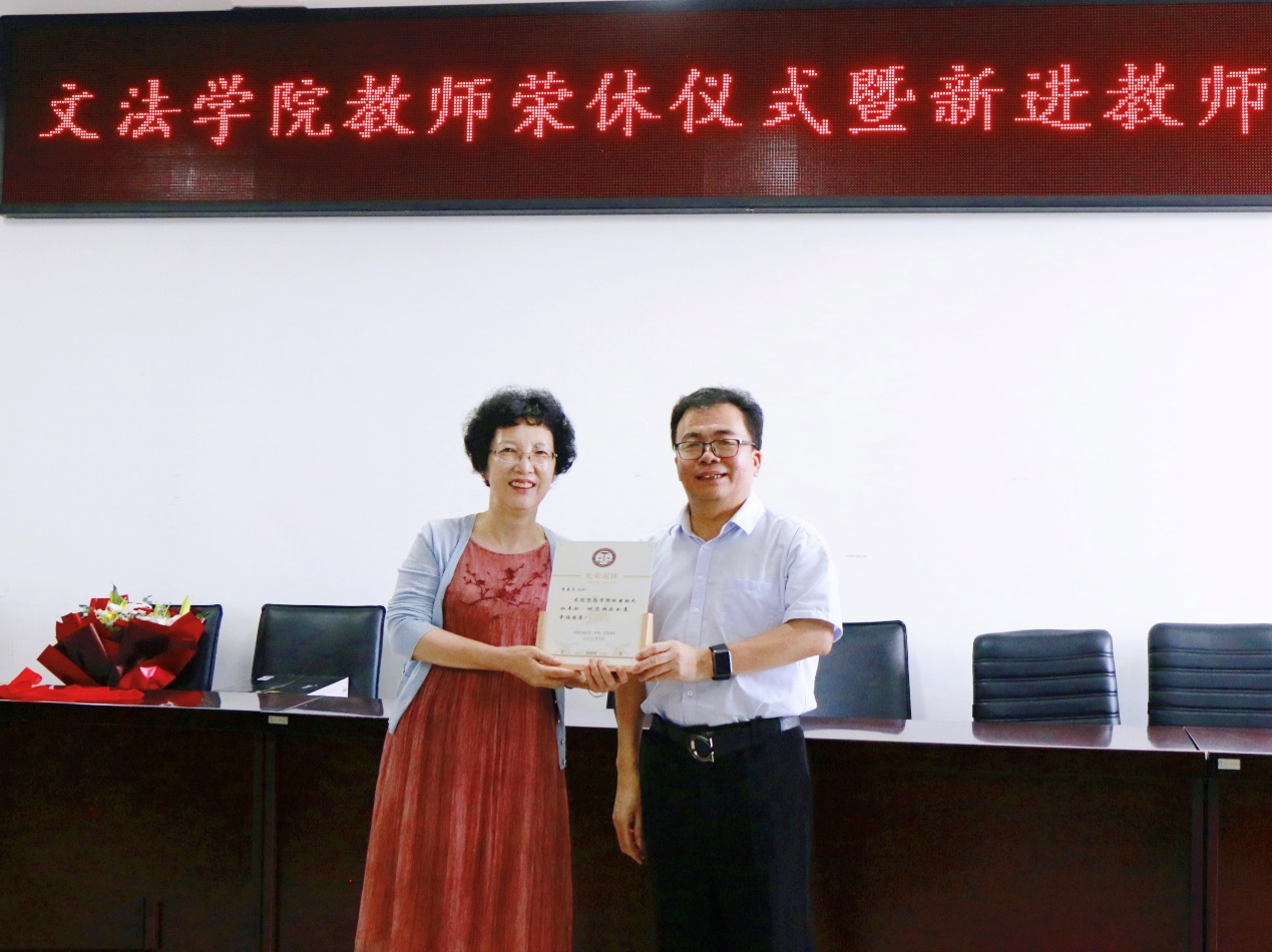 7月13日,学院举行教师荣休仪式暨新进教职工座谈会。荣休教师代表李美子老师,贺小军教授等8位新进教职工,学院领导班子,教授委员会主任、副主任,中国语言文学系、法学系等相关老师参加,会议由党委书记姚成郡主持。