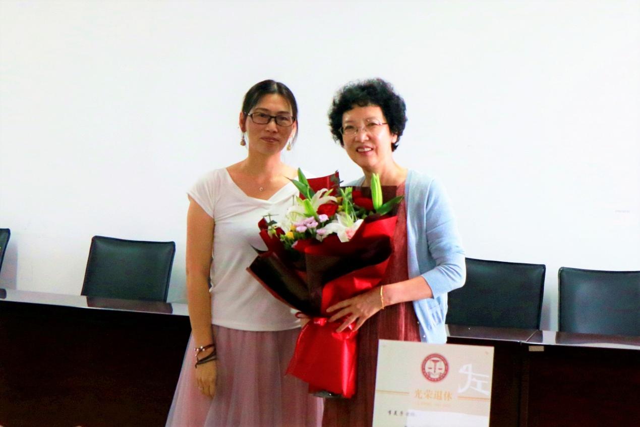 中国语言文学系主任沈壮娟回顾了李美子、李红兵两位老师的工作经历,对她们为学校、学院、学科和中国语言文化国际传播做出的重要贡献表示崇高的敬意和衷心的感谢,并祝福两位老师在退休之后,迈入新阶段,开启新篇章。院长王学栋代表学院向荣休教师代表李美子老师颁发光荣退休证书,副院长冷凌代表工会献上鲜花。
