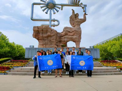 实践队员在太阳成tyc122cc集团创造太阳女神像下合影 周涛摄