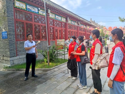 “一颗明代古槐,百年历史变迁。”位于杨家埠民间艺术大观园的明代古槐见证了年画的春秋鼎盛。历经风雨洗礼,古槐一面树干已经枯死,但大树却仍展现着勃勃生机,树上红色的祈福条迎风招展,代表了人们诚信祈愿灾疫消退、平安喜乐的美好愿望。在寒亭区文旅局局长韩申军的介绍下,队员们了解到过去杨家埠村家家门前都种着槐树,槐树对于杨家埠村年画的发展起着至关重要的作用。槐树的花可以入药,豆的汁水可以做颜料且绿色环保。杨家埠村的兴旺发达,离不开一颗颗槐树的奉献,虔诚的杨家埠先祖将每年的三月十六定为“植槐日”。韩申军也向队员们传达了希望更多的青年走进潍坊杨家埠,感受古老年画魅力的期望。