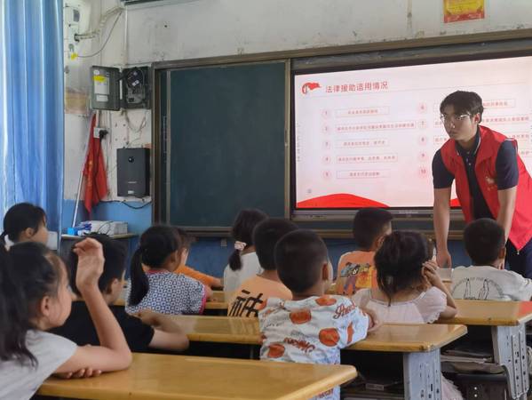 “根据之前我们的调研情况,我在宣讲时,从小处入手,着重讲述了法律援助作为我们自身权利的法律保障是如何发挥着巨大作用以及当我们遇到其他途径难以解决的问题时,该怎么样利用法律援助的途径保护我们自身的合法权益的简单问题,我觉得这些问题比较基础,同时也让学生们更好的吸收。”队员刘乔威说道。丰富的案例加之队员们幽默风趣的言语,教室里的小朋友们对这些丰富有趣又不枯燥的法律小课堂充满了兴趣。