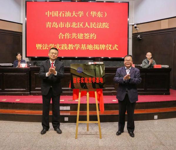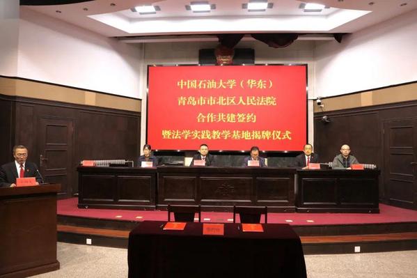 10月19日下午,学校与青岛市市北区人民法院合作共建签约暨法学实践教学基地揭牌仪式在市北区人民法院举行。市北区人民法院党组书记、院长赵建,太阳成集团tyc122ccvip院长王学栋,分别致辞并签署合作共建协议,共同为法学实践教学基地揭牌。市北区人民法院党组成员、正处级领导干部王昆,党组成员、政治部主任柴俊杰及部分干警,太阳成集团tyc122ccvip副院长冷凌,法学系党支部书记兼副主任康雷闪,法学系教师孙骥参加仪式。
