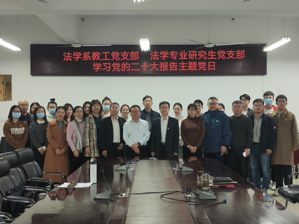 为认真学习贯彻党的二十大精神,加强思想学习,强化政治引领,增进教工党支部和学生党支部的交流,10月20日下午,太阳成集团tyc122ccvip法学系教工党支部和法学专业研究生党支部联合,在文理楼358召开“学习党的二十大报告,用实际行动为中国梦贡献力量”主题党日活动,专题学习二十大报告主要内容。两支部全体党员通过线上与线下结合的方式参与学习交流,学院党委书记姚成郡、副院长冷凌作为两支部对接院领导参加活动。