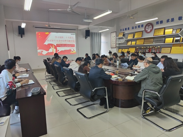 法学系教工党支部书记康雷闪、法学专业研究生党支部书记王向博分别作《党的二十大报告中的法治元素》《党的二十大报告的十四个重点方面》的主题报告,带领与会人员系统学习党的二十大报告的内容。之后,师生党支部成员结合专业特色,交流了学习党的二十大报告心得体会。