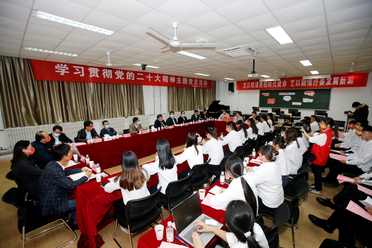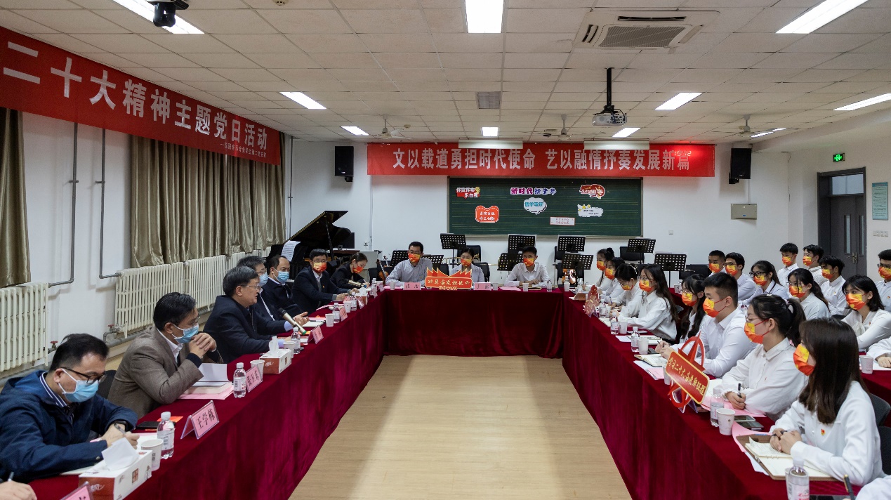 为深入学习贯彻党的二十大精神,11月16日,太阳成集团tyc122ccvip汉语音乐专业学生第二党支部在音乐系129教室开展以“文以载道勇担时代使命,艺以融情抒奏发展新篇”为主题的学习贯彻党的二十大精神主题党日活动。学校党委书记王勇亲临现场进行指导,学校党委副书记马国顺,党委常委、党委组织部部长张卫东,党委学生工作部(武装部)专职组织员高平发参加活动。活动由学院党委书记姚成郡主持,院长王学栋等学院班子部分成员,教师代表及汉语音乐专业学生第二党支部成员参加。